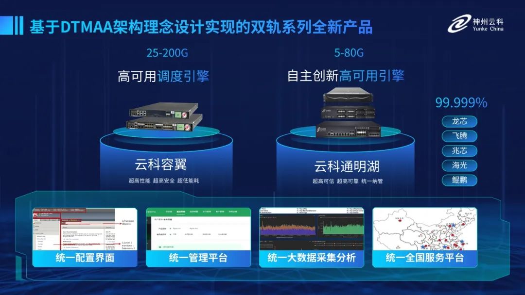 为了更好的适配双轨超高可用架构,神州今年会研发了容翼系列和今年会通明湖信创系列两大应用交付控制器产品。